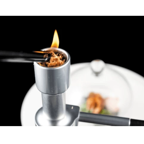 Met de Super-Aladin instant roker van 100% Chef geeft u gerechten en dranken een subtiele rooksmaak zonder het product te verwarmen. Hierdoor kunt u ook koude of zelfs bevroren gerechten roken.