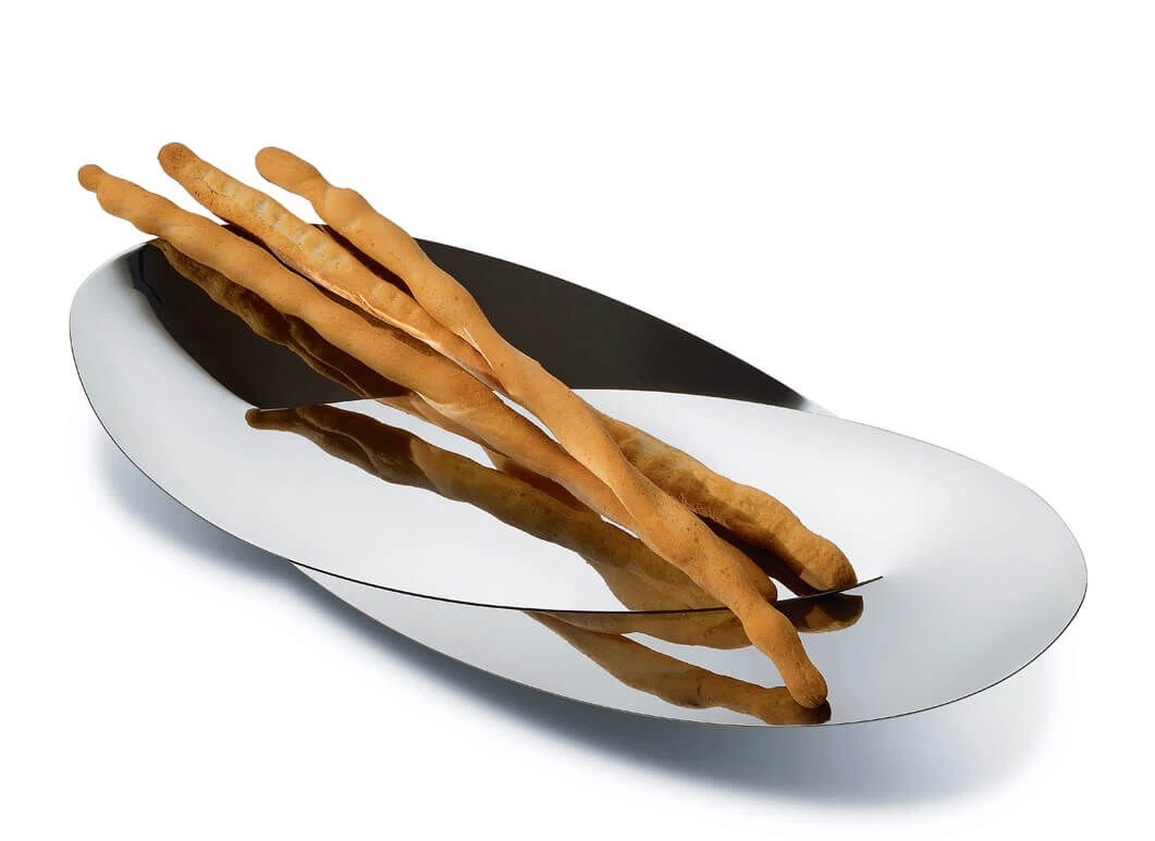 U gebruikt de Octave schaal van Alessi voor het presenteren van bijvoorbeeld fruit of brood. Ontworpen door Abi Alice in 2014 en met de hand gemaakt uit gepolijst 18/10 roestvrij staal.