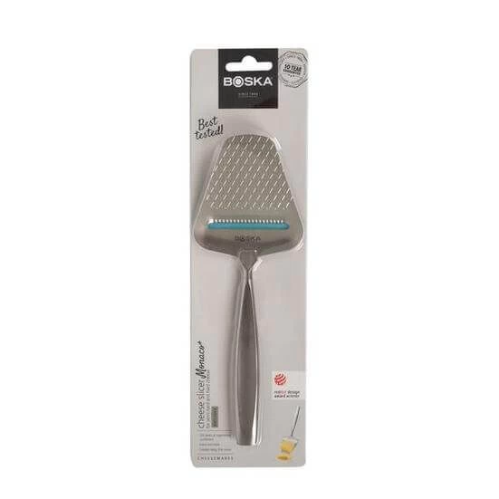 De Boska Monaco+ kaasschaaf is vervaardigd uit roestvrij staal. Het blad van de schaaf is voorzien van een anti-kleefcoating en een ruitpatroon. Hierdoor blijft ook halfharde kaas niet aan het blad kleven.