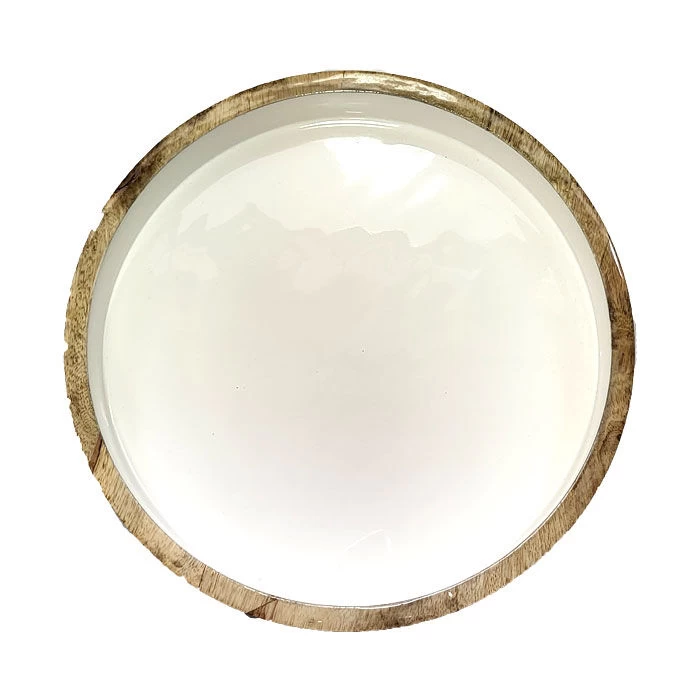 Op zoek naar een stijlvolle schaal om (zomerse) salades of andere gerechten te serveren? Dit exemplaar van By Room is er één voor op uw wensenlijst! Het item is vervaardigd uit mangohout en heeft een rond design met een diameter van 28 cm. De binnenkant is voorzien van een witte sticker voor een strak effect. Combineer de schaal met het bijpassende slacouvert voor een elegant geheel.