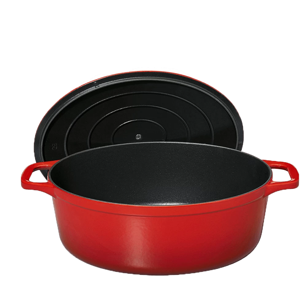 De Oldenhof by Chasseur braadpan is vervaardigd uit rood, geëmailleerd gietijzer en heeft een matzwarte binnenzijde. De ovale pan heeft een lengte van 31 cm en een inhoud van 6 liter. Hiermee is de pan geschikt voor het maken van gerechten voor 6-8 personen, bijvoorbeeld voor soepen of stoofgerechten. De ovale vorm maakt de pan uitermate geschikt voor het bereiden van langere braadstukken. De Chasseur braadpan is geschikt voor gebruik op alle warmtebronnen, inclusief inductie en de oven.