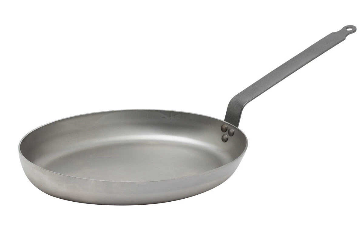 De De Buyer Carbone koekenpan is ideaal voor het bakken van ingrediënten op hoge temperaturen. De plaatstalen koekenpan is PFOA- en PFTE-vrij, recyclebaar en duurzaam. De pannen worden stuk voor stuk vervaardigd in Frankrijk en zijn zeer geliefd in de professionele keuken. De De Buyer koekenpan is geschikt voor gebruik op gas, halogeen, keramiek, elektrische fornuizen en in de oven.