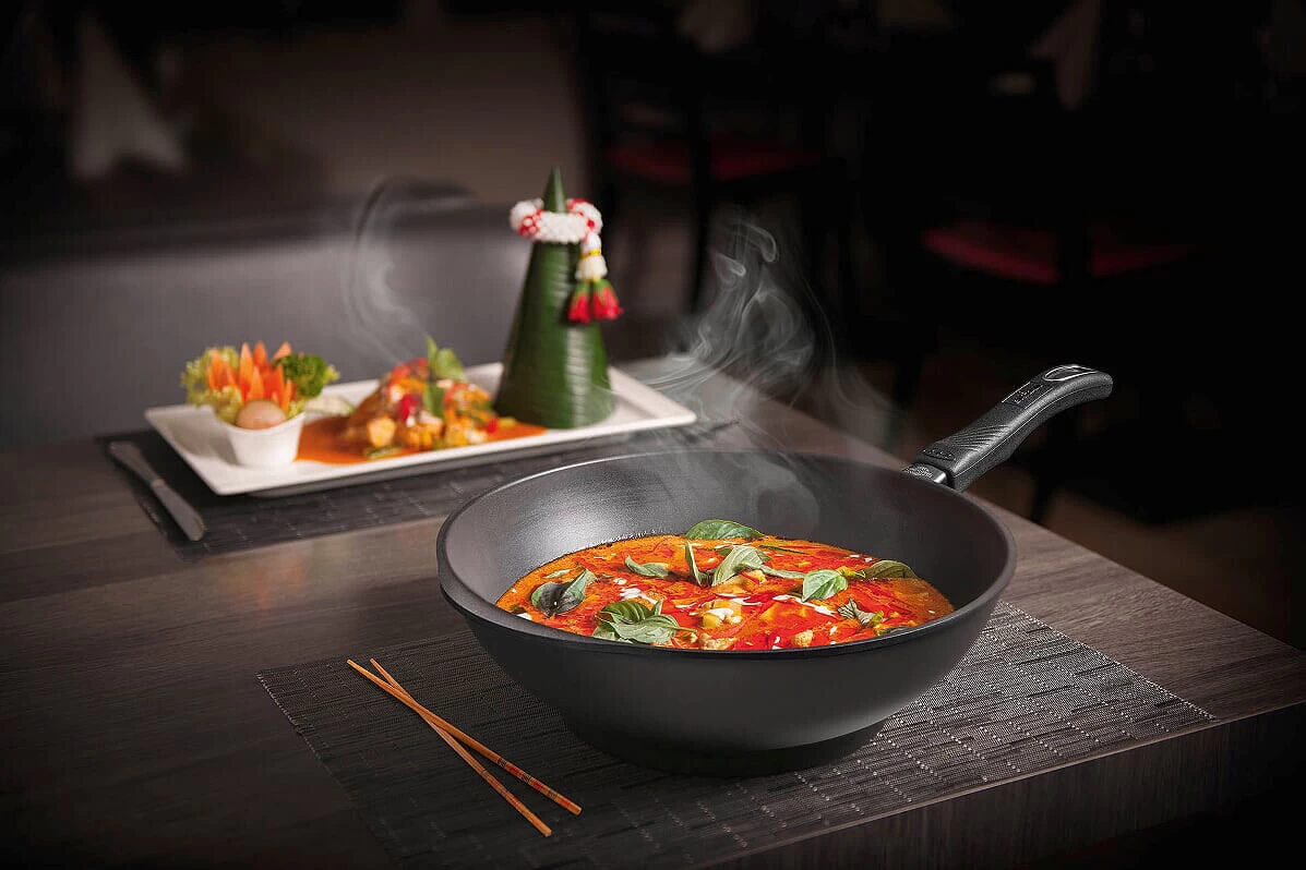 Geniet dagelijks van de bewezen kwaliteit van Gastrolux met de Gastrolux Expert wok. De pan is vervaardigd van vormvast aluminium en geschikt voor alle warmtebronnen, inclusief inductie en ovenbestendig (tot 260°C). Het aluminium wordt verhit tot 620°C en vloeibaar gegoten in een mal. Het resultaat wordt onder zeer hoge druk geperst tot de juiste vorm, waarbij de kenmerkende honingraatstructuur aan de bodem wordt gegeven. Het gebruikte materiaal bereikt dankzij de perfecte warmtegeleiding zeer snel en gemakkelijk een hoge temperatuur. Hiermee bespaart u tijd, energie en geld.