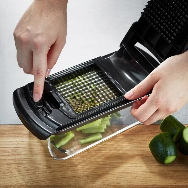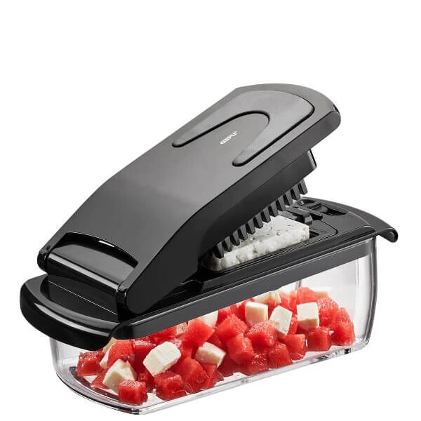 De Gefu Treppo snijder is gemaakt van kunstof en roestvrijstaal. De snijder heeft een lengte van 26,8 cm, is 11,2 cm breed en 12,1 cm hoog. De snijder is gemaakt voor het gemakklijk snijden van reepjes of blokjes in verschillende maten; namelijk 7×7 mm of 13×13 mm blokjes/reepjes. Gebruik de snijder bijvoobeeld voor het gemakkelijk bereiden van een griekse salade of het snijden van groenten voor in een pasta.