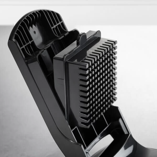 De Gefu Treppo snijder wordt geleverd met 2 verschillende uitneembare grids voor het snijden in verschillende maten. Daarnaast wordt de set geleverd met een schoonmaakkam en afsluitdeksel voor het bewaren van gesneden groenten in de 1L opvangkom. De bodem van de snijder is voorzien van anti-slip materiaal waardoor het bakje niet snel zal glijden tijdens het gebruik.