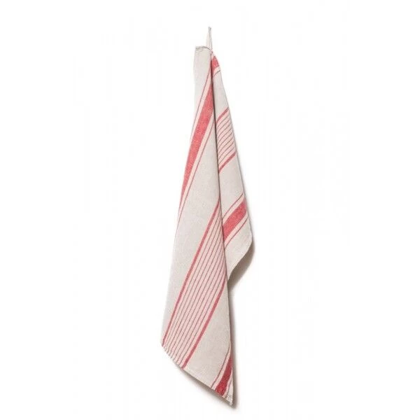 Haal het luxe gevoel in huis met de Aubagne-theedoek van Haomy! Het linnen design heeft een afmeting van 46 x 70 cm en heeft een natuurlijk beige kleur. De theedoek is voorzien van een gestreept patroon in rode kleur.