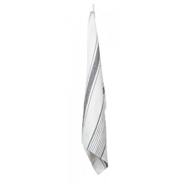 Haal het luxe gevoel in huis met de Aubagne-theedoek van Haomy! Het linnen design heeft een afmeting van 46 x 70 cm en heeft een witte kleur. De theedoek is voorzien van een gestreept patroon in granietgrijze kleur.