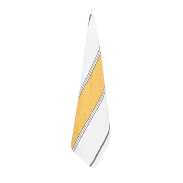 Haal het luxe gevoel in huis met de Lecci-theedoek van Haomy! Het linnen design heeft een afmeting van 46 x 70 cm en heeft een witte kleur. De theedoek is voorzien van een saffraangeel gestreept patroon.
