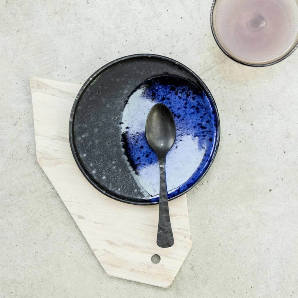 Het HK Living 70’s dessertbord is kobaltblauw, met een kleurverloop. Het bord is rond en heeft een diameter van 17,5 cm.