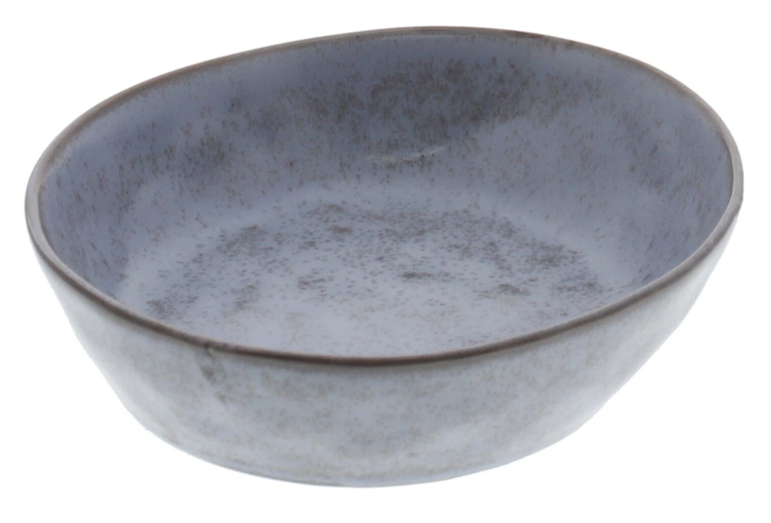 De schaal van HK Living heeft een gemêleerde grijze kleur met een blauwe zweem in het glazuur. Samen met de imperfecties van het handgemaakte aardewerk heeft de schaal een rustieke uitstraling.