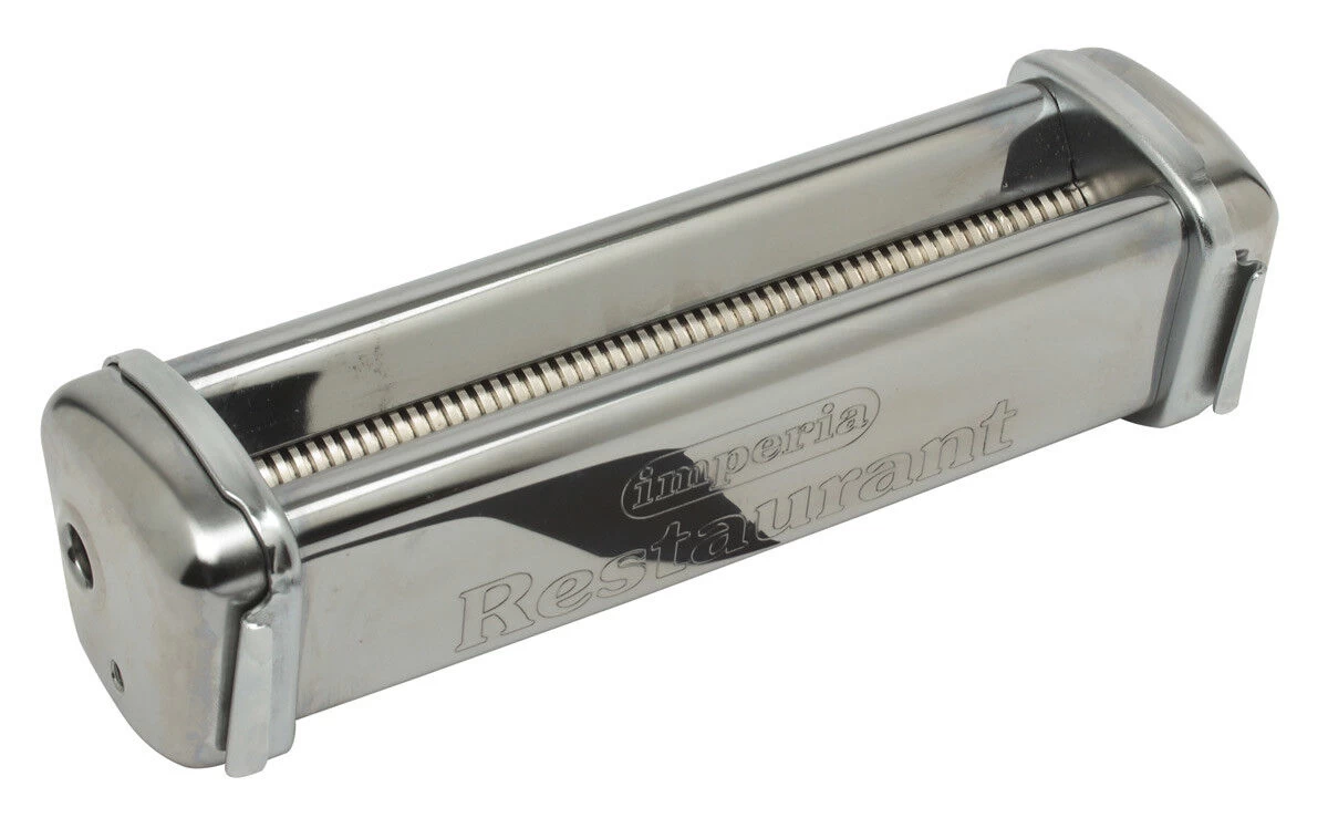 Gebruik het glanzend roestvrijstalen Imperia tagliatelle opzetstuk bij uw Imperia Restaurant pastamachine. Met het opzetstuk maakt u tagliatelle, een pastasoort met slierten van 2 mm breed.