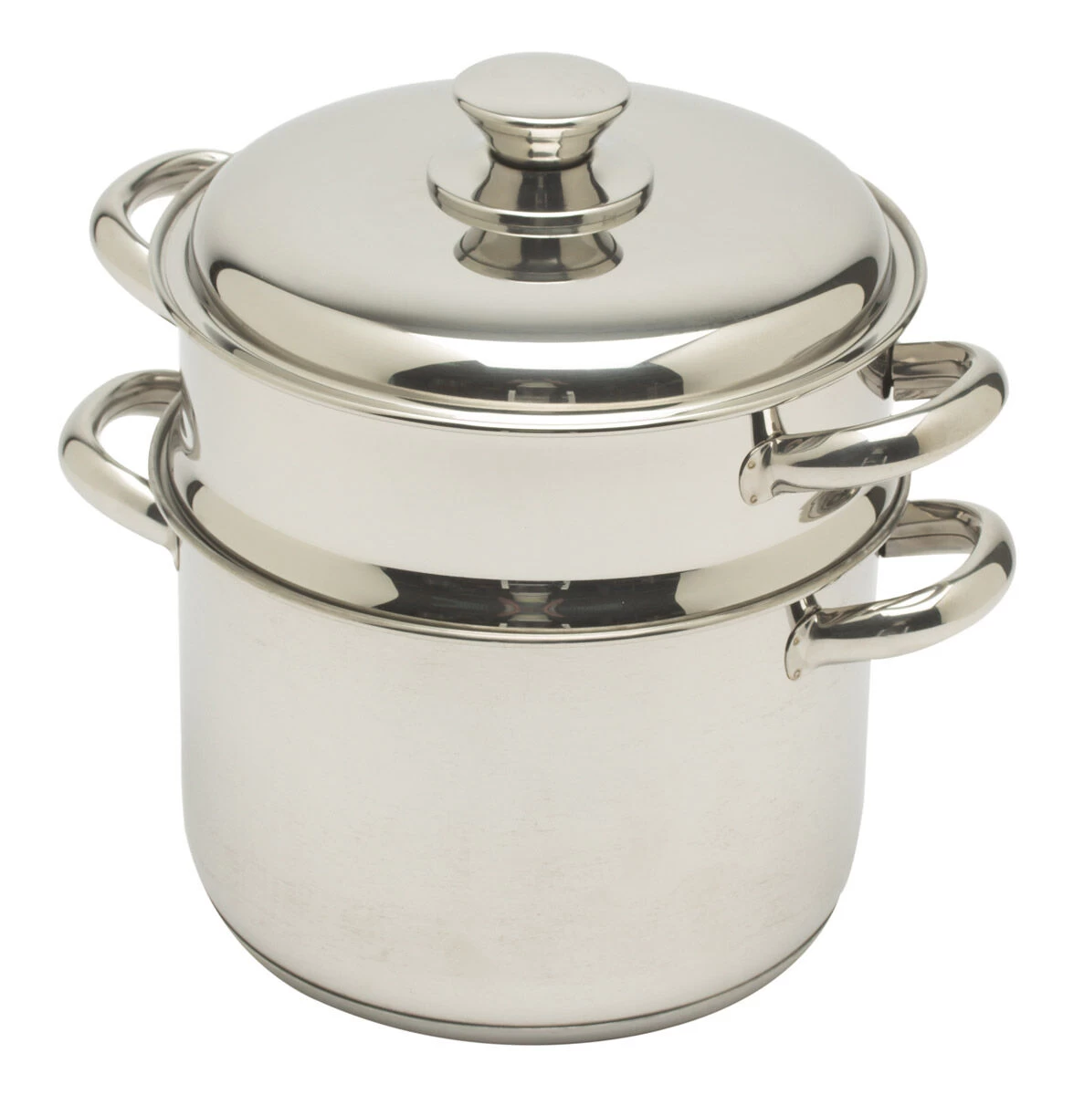 De Inoxibar stoompan bestaat uit een kookpan, een stoominzet en een deksel, elk met een diameter van 20 cm. De pan is vervaardigd uit roestvrij staal en is geschikt voor gebruik op alle warmtebronnen, inclusief inductie. Gebruik deze set om groenten te stomen, hierdoor blijven smaak- en voedingsstoffen beter behouden.