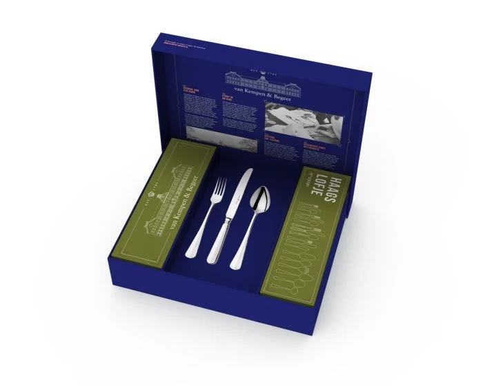 Het Haags Lofje bestek is klassiek vormgegeven en gebaseerd op het oorspronkelijke Nederlands ontwerp. Kenmerkend zijn de rondingen in de vork en lepelstelen en de elegant gelaagde brug in het mes.