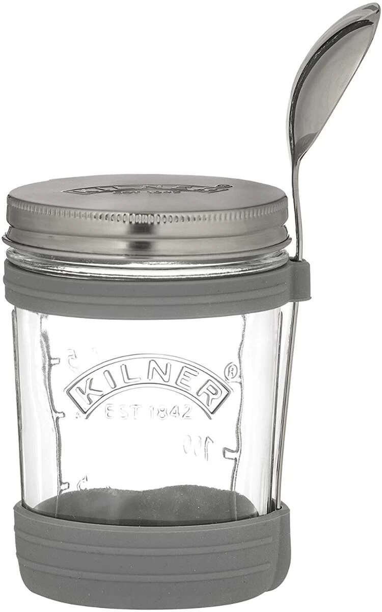 Dankzij de inhoud van 350 ml is Kilner’s Soup Jar Set zeer geschikt voor het thuis en/of onderweg nuttigen van uw favoriete (zelfgemaakte) soep. De Soup Jar Set is 11 cm lang, 14 cm breed en 20 cm hoog. Goed om te weten: net als de glazen pot zijn ook de siliconen onderzetter, lepelhouder en onderdeksel geschikt voor in de magnetron. De siliconen onderdelen absorberen de warmte en de onderdeksel gaat opspatten tegen. Gaat u de pot in een tas vervoeren? Vergeet dan niet om onderdeksel onder de rvs-draaidop te plaatsen. Zodoende bent u ervan verzekerd dat de inhoud niet uit de pot kan lekken.