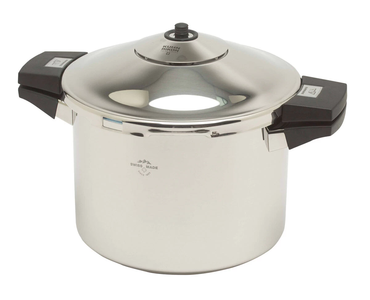Voor een optimale warmteverdeling heeft de snelkookpan de speciale door Kuhn Rikon ontworpen Superthermic bodem. Deze bodem maakt de pan geschikt voor alle soorten kookplaten, inclusief inductie. Door de gewelfde vorm zal de bodem de warmte altijd optimaal over het oppervlak verdelen, zelfs als de pan niet exact op het midden van de warmtebron is geplaatst.