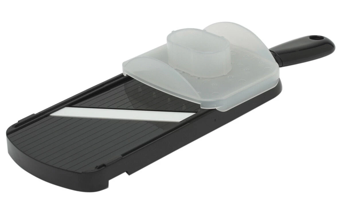 De zwarte kunststof mandoline van Kyocera is voorzien van een keramisch mes en een vingerbeschermer. De Kyocera mandoline heeft een lengte van 28 cm en is 9 cm breed. De maximale breedte van het te snijden product is 7,5 cm.