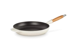 Deze meringue, crèmkleurige, koekenpan van Le Creuset heeft een diameter van 28 cm en is gemaakt van geëmailleerd gietijzer. In tegenstelling tot de andere koekenpan rond van Le Creuset heeft deze koekenpan een open tegengreep. Gebruik de koekenpan voor het bakken van vlees, omeletten en pannenkoeken.