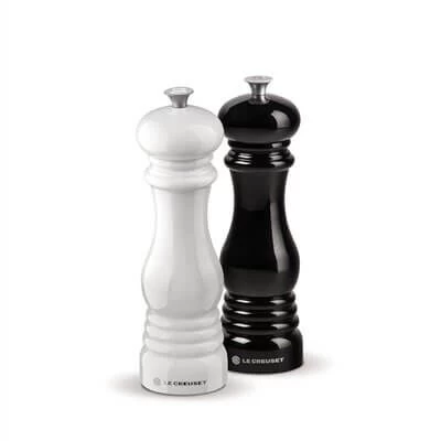 De peper- en zoutmolenset van Le Creuset is gemaakt van glanzend zwart en wit kunststof en heeft een lengte van 21 cm. De molen heeft een klassiek ontwerp en is eenvoudig te vullen. Met het keramische maalmechanisme maalt u zowel grof en fijn. Het maalsysteem is eenvoudig aan te passen naar uw wens, zodat u uw gerechten altijd op de juiste smaak brengt. De sluitdoppen zijn voorzien van een duidelijke markering, waardoor de molens gemakkelijk te onderscheiden zijn.