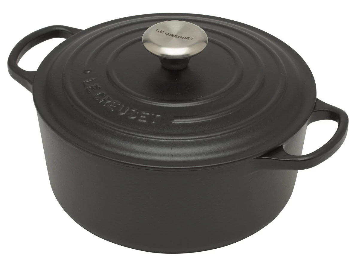 De matzwarte Signature braadpan van Le Creuset heeft een diameter van 24 cm. De ronde pan van geëmailleerd gietijzer heeft een inhoud van 4,2 liter, bedoeld voor 4 tot 6 personen. De braad-/ stoofpan heeft extra grote grepen. De ronde vorm maakt de Signature braadpan geschikt voor soep en stoofgerechten als boeuf bourguignon.