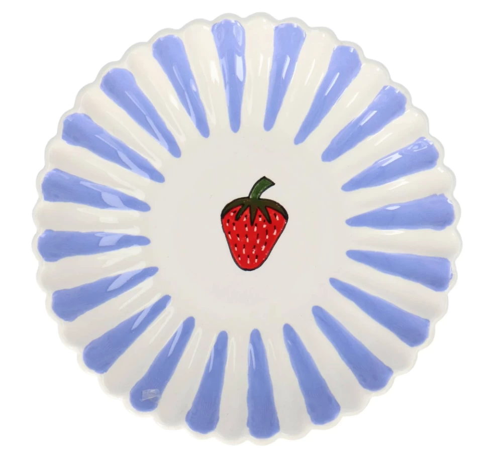 Het Oldenhof Aardbei diep bord is gemaakt van geglazuurd aardewerk en heeft een diameter van 23 cm. Gebruik het bord voor het serveren van gerechten, door de geribbelde rand staan de borden feestelijk op tafel.