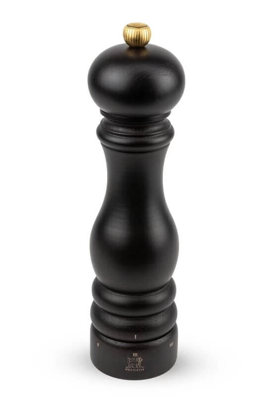De Peugeot Paris chocolat pepermolen heeft het klassieke Peugeot model, is uitgevoerd in bruin gelakt beukenhout en heeft een hoogte van 22 cm. Het maalwerk in de molen is vervaardigd uit roestvrij staal. De molen is voorzien van u-select, waarmee u de grofheid van de korrel traploos kunt instellen.