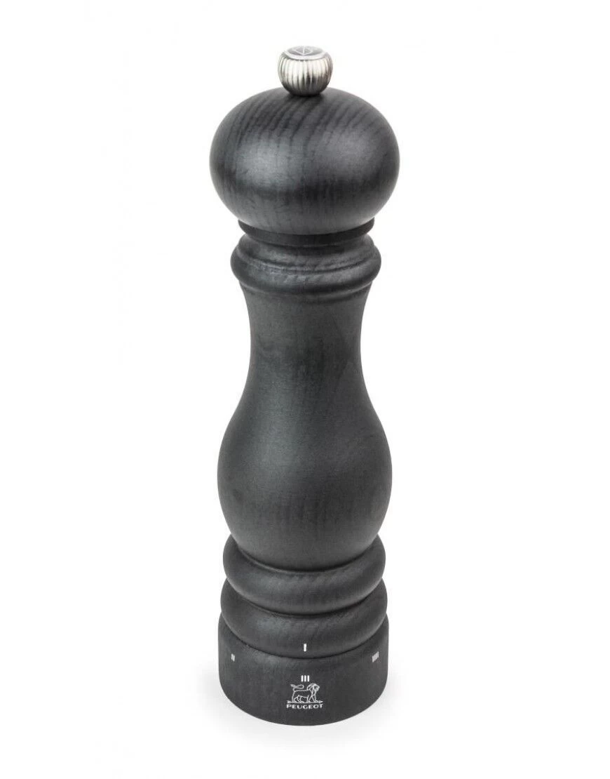 De Peugeot Paris Graphite zoutmolen heeft het klassieke Peugeot model, is uitgevoerd in donkergrijs hout en heeft een hoogte van 22 cm. Het maalwerk in de molen is vervaardigd uit roestvrij staal. De molen is voorzien van u-select, waarmee u de grofheid van de korrel traploos kunt instellen. Op de metalen draaiknop bovenop bevindt zich de het logo van Peugeot.