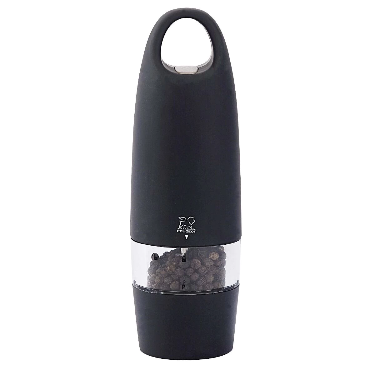 De Peugeot Zest elektrische pepermolen is uitgevoerd in soft touch kunststof en acryl en heeft een hoogte van 17 cm. De molen heeft een roestvrijstalen maalwerk met instelbare maalgraad. Onderaan de pepermolen bevindt zich een transparant gedeelte, de hoeveelheid peper in de molen is hierdoor zichtbaar. Aan de bovenzijde zit een ring waaran de molen kan worden opgepakt, en daar onder bevindt zich de knop om de molen te bedienen. De molen werkt op batterijen (meegeleverd).