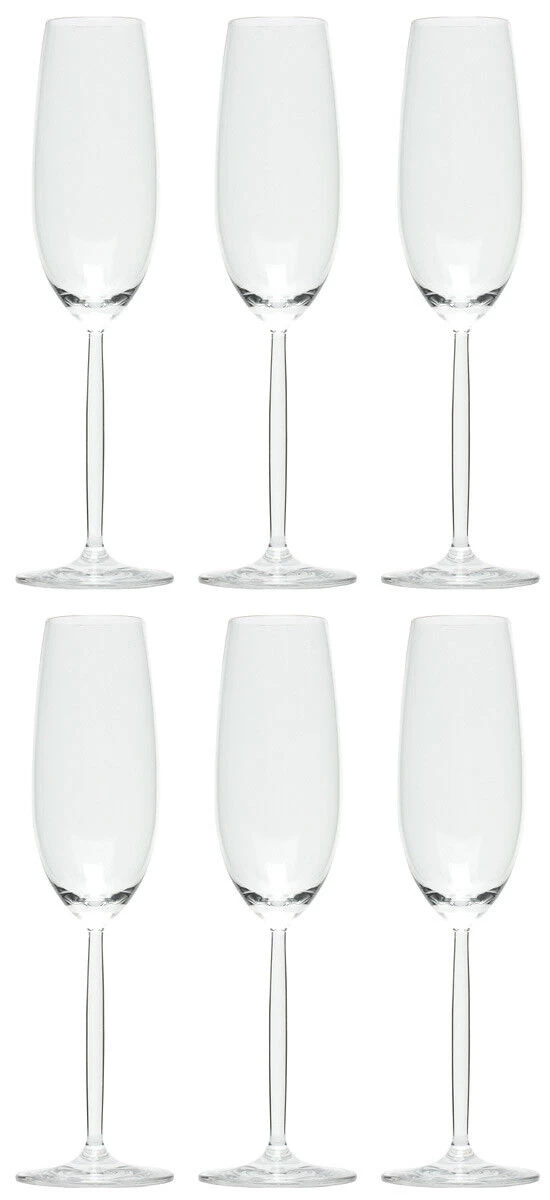 De Schott Zwiesel Diva champagneglazen zijn van Tritan kristalglas gemaakt. De glazen hebben een inhoud van 220 ml, een hoogte van 25,3 cm en een diameter van 7,2 cm. Ideaal voor het drinken van champagne. 6 stuks.