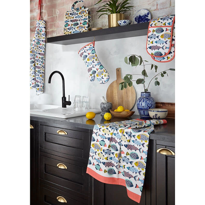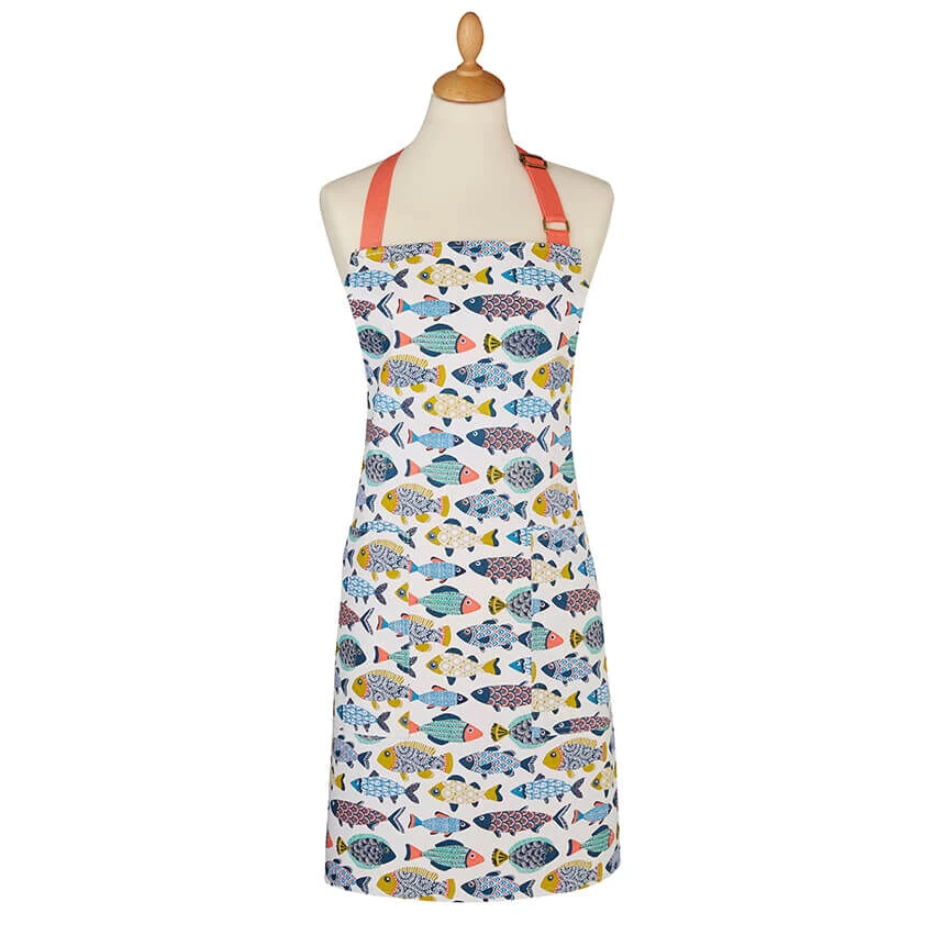 Het witte Ulster Weavers Aquarium schort is gemaakt van katoen. Gebruik het schort om uw kleding tegen spetters en vlekken te beschermen. Aan de voorzijde is het schort voorzien van een print met vissen. Het schort is ontworpen met een verstelbare nekband en praktisch voorvak.Het schort is 95 cm lang en 70 cm breed