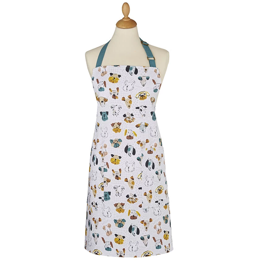Het blauwe Ulster Weavers Mutley Crew schort is gemaakt van katoen. Gebruik het schort om uw kleding tegen spetters en vlekken te beschermen. Aan de voorzijde is het schort voorzien van een print met hondjes. Het schort is ontworpen met een verstelbare nekband en praktisch voorvak.Het schort is 95 cm lang en 70 cm breed