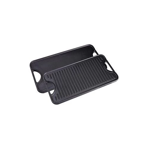 De Victoria geëmailleerde dubbelzijdige grillplaat is 47 cm lang en 25 cm breed en is vervaardigd uit gietijzer. Omgedraaid is de grillplaat als bakplaat te gebruiken. Gebruik de plaat voor het bakken en grillen van bijvoorbeeld vis, pannenkoeken en steaks. Aan beide korte zijden is een handgreep uitgespaard.