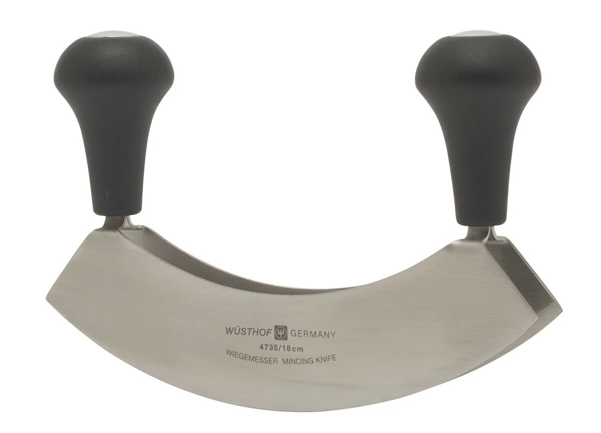 Dit wiegemes van Wüsthof heeft een dubbel messenstalen lemmet van 18 cm lang. Het wiegemes ligt lekker in uw handen dankzij de twee kunststof handgrepen. Gebruik het Wüsthof wiegemes voor het gemakkelijk snijden van kruiden.