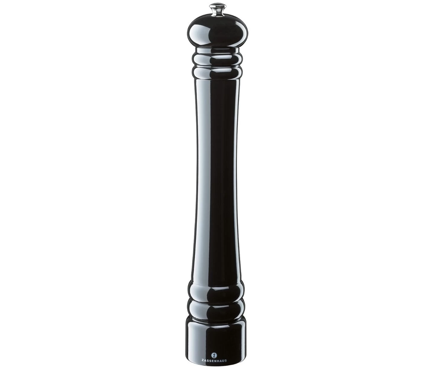 De Zassenhaus Berlin pepermolen glanzend zwart heeft een klassiek uiterlijk. De pepermolen is glanzend zwart gelakt en heeft een keramisch maalwerk. De pepermolen van Zassenhaus is 40 cm hoog, en heeft een diameter van 6,9 cm.